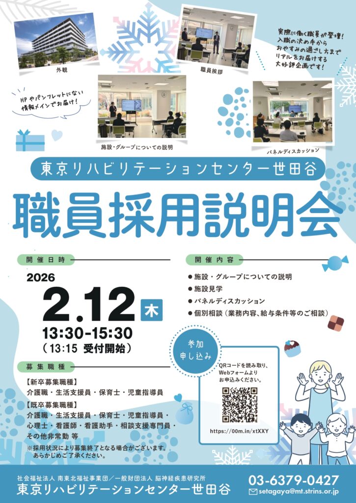 2・3月開催 東京リハビリテーションセンター世田谷『職員採用説明会』のご案内