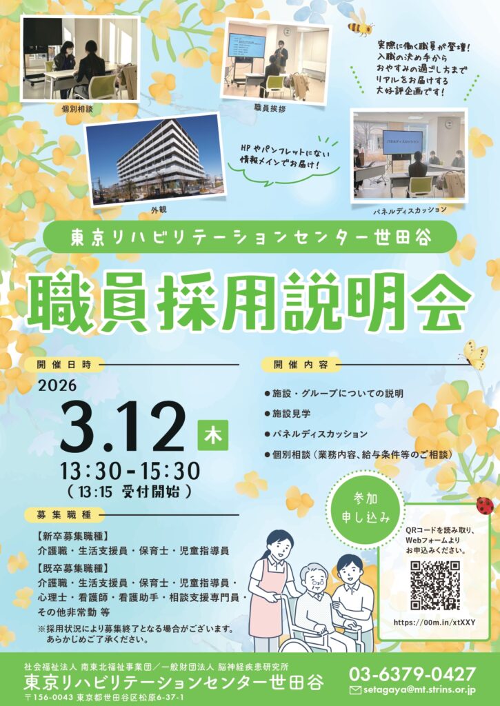 3・4月開催 東京リハビリテーションセンター世田谷『職員採用説明会』のご案内