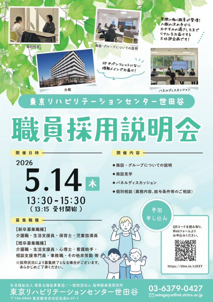 5・6月開催 東京リハビリテーションセンター世田谷『職員採用説明会』のご案内